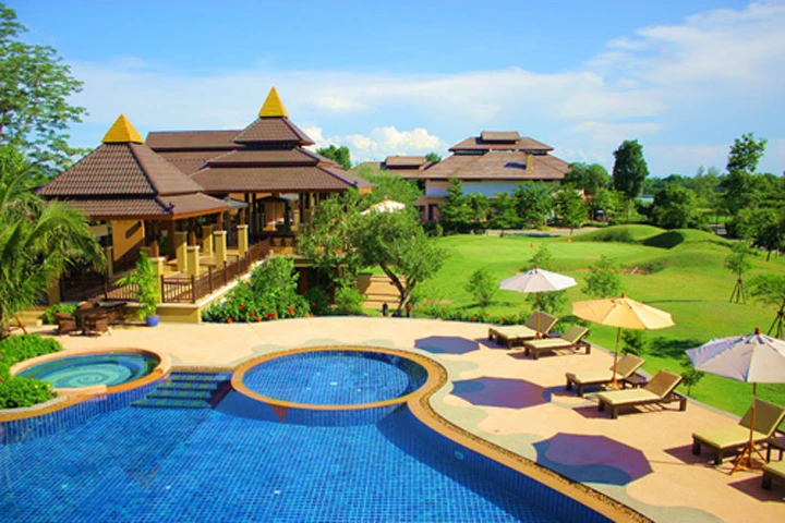 "チェンマイ市内、チェンマイ空港から北に約30分、メージョー地区に位置するメージョーゴルフクラブリゾート&スパは、美しい果樹園に囲まれた18ホールのゴルフコースです。コースの中にもマンゴーやライチ、ランブータンなど、旬のフルーツがなっていたりします。2004年にオープンしたこのゴルフ場は全長6,730ヤード、パー72を誇り、バスタブ付きの綺麗な宿泊施設も完備なので、泊まり込みでゴルフを楽しむことができます。